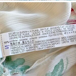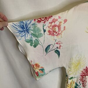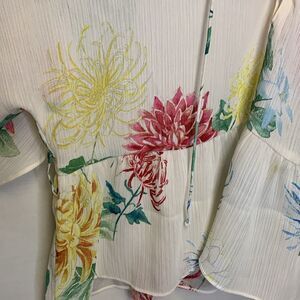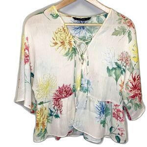Zara Semi-Sheer Ivory Floral Lace Up Neckline Kimono Sleeve Peplum Top Size M