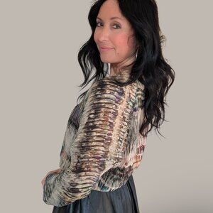 Zara Semi-Sheer Long Sleeve Blouse - Neutral Watercolor Print - Size Small