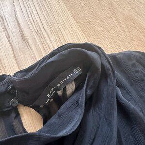 Zara Semi-Sheer Striped Neck Tie Blouse, Size XS