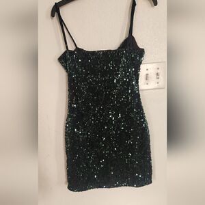 Zara Sequin Green Emerald Mini Dress Size Medium