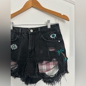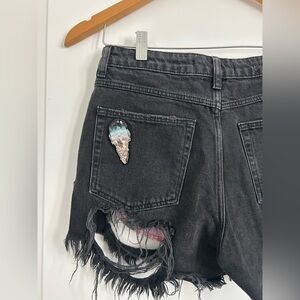 Zara Sequin Patch Distressed Jean Black Shorts size 2