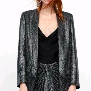 Awesome Zara Woman sequin blazer in black/silver