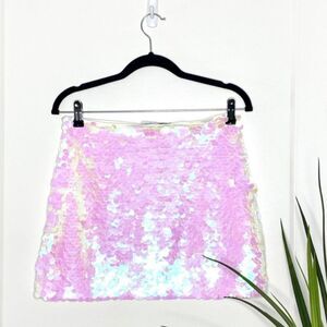High-waisted skirt with sequins. Interior lining. Side zip closure.