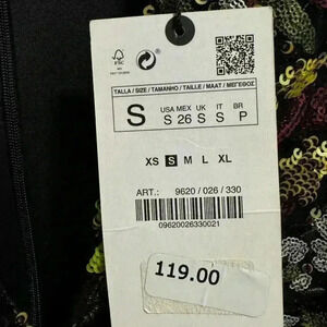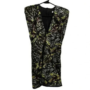 Beautiful and trendy midi dress. Sequined detail throughout. Shoulder pads for a Y2K look. Hidden back zipper closure.