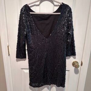 Zara Sequins Black Dress with V Back Size Medium Never worn