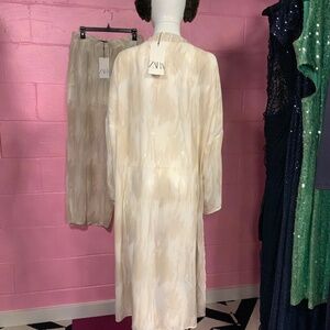 Beautiful Zara Duster and Pant Set! Both pieces are so flowy and lightweight, perfect for vacation or spring/summer. The duster has side slits and is sheer so perfect as a swim coverup or over a dress. The pants are sheer with built-in shorts and side pockets - so lightweight and flowy! The most perfect throw on and go outfit! Duster is a size M/L (I’m a S and can wear without feeling overwhelmed in it). The pants are a size L. Both items are BNWT, never worn excellent condition.