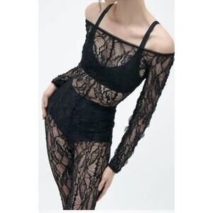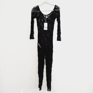 Zara Sexy Black Stretch Fit Lace Jumpsuit Size Medium