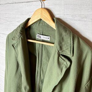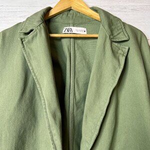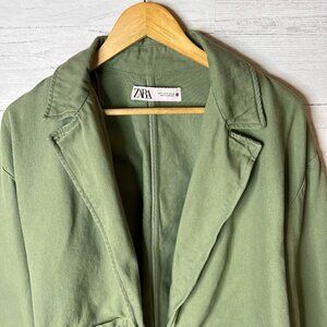 - Zara Shacket Womens Sage Green Denim Wide Arm Sleeve 100% Cotton