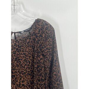 Zara Sheer Animal Print Blouse Sz Large Long Skeeve
