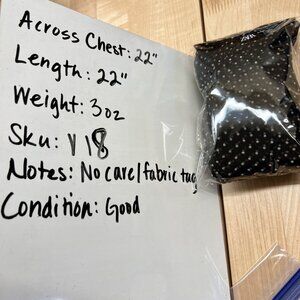 Good condition, no care/fabric tag. Across chest = 22", length = 22".
