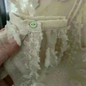 Zara Sheer Blouse NWT. Size Small. Beautiful sheer top ties at chest with flowers made out of fur. Color is a blush peach tan color. Very different piece. Long sleeve with button at cuff #227E