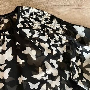 Zara Sheer Butterfly Print Lightweight Boho Peasant Blouse Size S