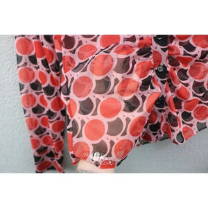Zara Sheer Button Down Blouse-Size Small. The material is 100% Polyester. Laying flat measuring armpit to armpit it is 19.5'' and 21.5'' in length.