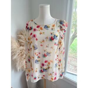 Zara Sheer Floral Ruffle Long Sleeve Blouse Women’s Medium Romantic Garden Party