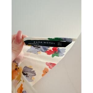 Bring feminine charm to your wardrobe with this Zara sheer floral blouse. Designed with long sleeves, soft ruffle detailing, and a lightweight sheer fabric, this top captures an effortlessly romantic feel. The multicolor floral print on a cream backdrop makes it perfect for spring, summer, or layering under a blazer for year-round styling.
