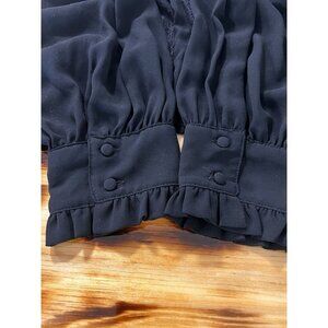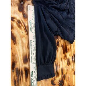 Zara Sheer Lace Black Ruffle Button Blouse Size Large Formal Designer Event City