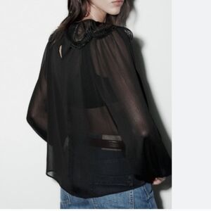 Zara Sheer Organza Blouse With-Peter Pan Collar