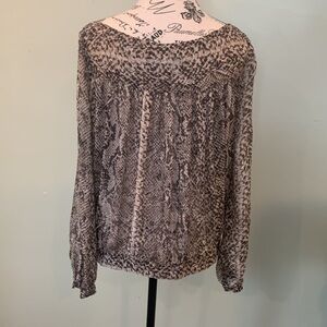 Zara Sheer Silk Snake Print Brown Sheer Blouse Top Women’s Small Long Sleeve
