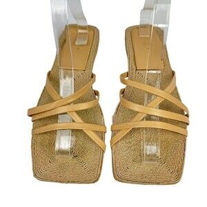 Zara Sheos Womens Size 38 Beige Square Toe Strappy Flat Sandals Jute 7.5 US READ. Condition is "Pre-owned"