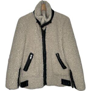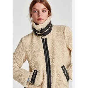 Zara Sherpa Fleece Full Zip Bomber Faux Shearling Flight Jacket Women M NWOT