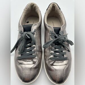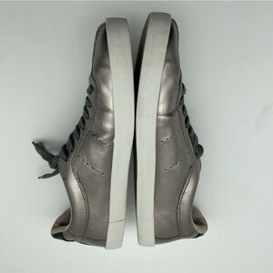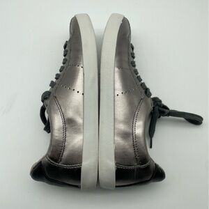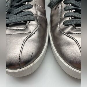 Grey interior lining. Grey Metallic with contrasting white sole & black contrasting detail on tongue & back of shoe.