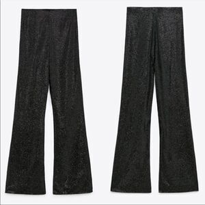 Zara Shiny straight Leg High Waisted Pants Semi Sheer W Interior Lining