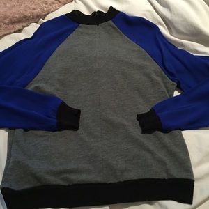 NWOT Gray, Zara, shirt with blue sleeves and a black neckline and black sleeve accents and a mock neck neck-line. Super cute and fashion forward!!!