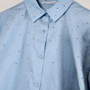 Zara Shirt Button Down Kids 11-12 Light Blue Studded Longsleeve