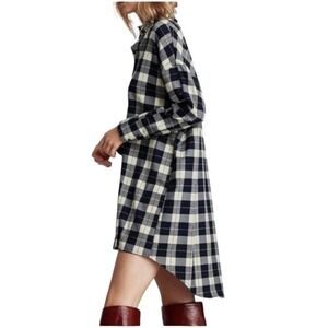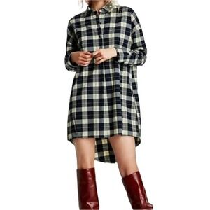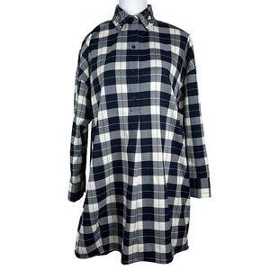 Zara Shirt Dress Oversized Plaid Gem Rhinestone Collar XS