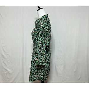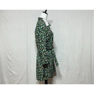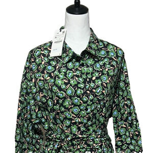Zara Shirt Dress XL Knee Length Green Floral Gia Button Up Belted NWT
