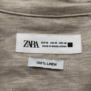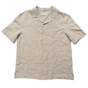 Zara Shirt Mens Size M Hawaiian Camp Collar Oversized Fit 100% Linen Beige