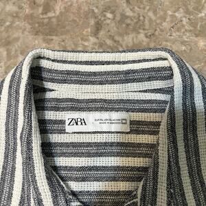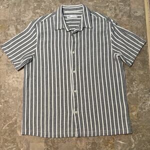 Zara Shirt Mens XL Black White Short Sleeve Camp Johnny Collar Knit Beach