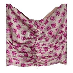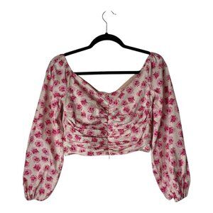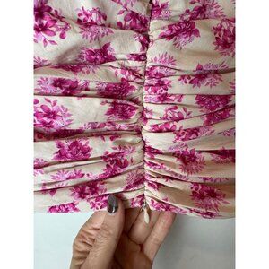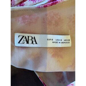 Zara Shirt Women Small Ivory Pink Floral Corset Bustier Long Sleeve Blouse Boho