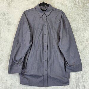 Zara Shirt Womens Medium Gray Button Down Oversized Back Pleat Long Sleeve Top
