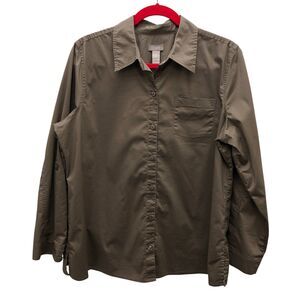 Features: Round neckline; button front with hidden placket; elastic ruffle cuffs; puff sleeves; scalloped hem and cuffs; allover geometric/flower embroidery; spare button attached on care tag