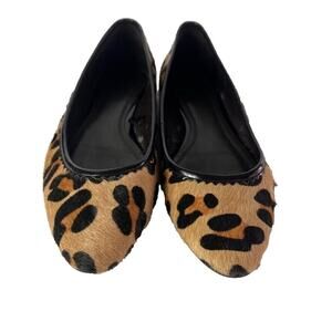 Zara Shoes Flats Woman 39 Calf Hair Leopard Print Leather Slip On Pointed Toe