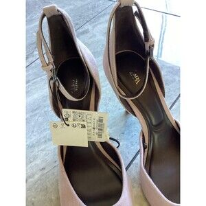 Zara Shoes Womens Size EU 38 Pink Suede Look Ankle Strap Stiletto Pumps Airfit