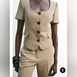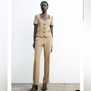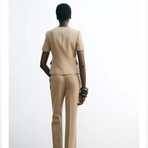 This elegant tan suit set is perfect for professional and formal occasions. The tailored design offers a sophisticated look, while the neutral color ensures versatility in styling.