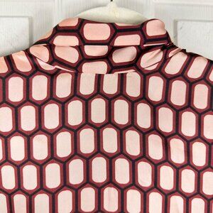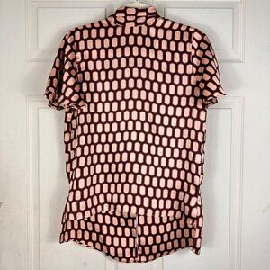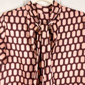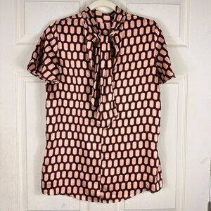 Zara Short Sleeve Blouse Burgundy Cream Geometric Print Bow Satin Size XSmall