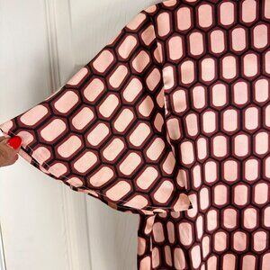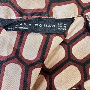 Zara Short Sleeve Blouse Burgundy Cream Geometric Print Bow Satin Size XSmall.