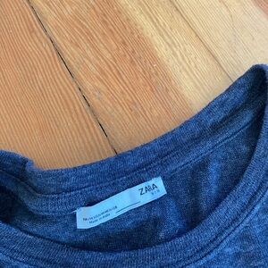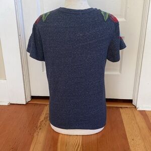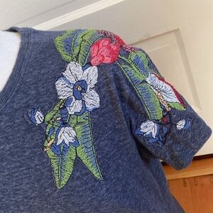 Zara short sleeve T-shirt with embroidered shoulders. Care tag removed, but feels like possible linen blend.