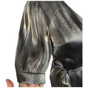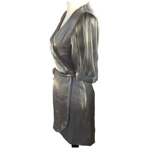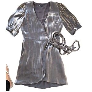 Make a statement in this fun and flirty silver metalic shimmery mini wrap dress by Zara. Great for holiday parties, going out, or anywhere you want!
