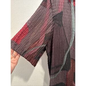 Semi sheer and textured. Great vacation shirt. Please check measurements to make sure shirt will fit. Great pre-owned condition, no flaws.