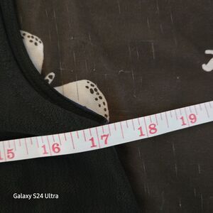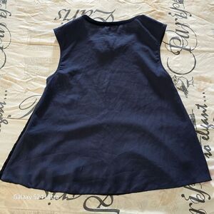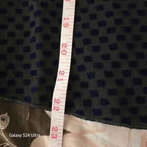 Women's size Small. New with tags. This top is a short sleeve scoop neck top with a flow bottom. The front is black with blue dots, velvet material. The back is all blue. Please see the pictures