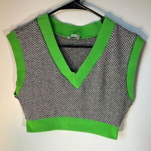 Zara Short Jacquard Top. Houndstooth Pullover Vest. Size Small. Brat! Slimegreen