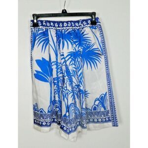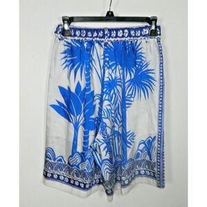 Zara Shorts Size X-Small White Blue Floral Bermuda Printed Elastic Waist