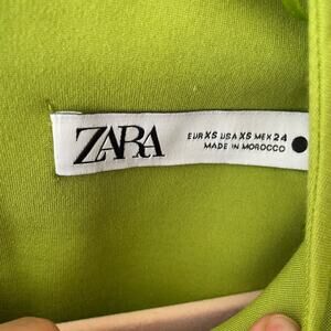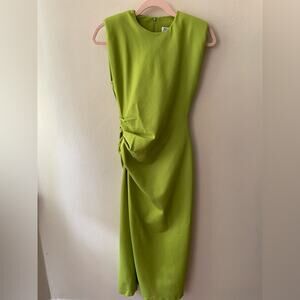 Zara Shoulder Pad Draped Bright Green Dress Size XS