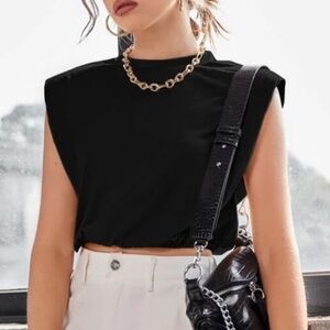 Zara Shoulder Pad crop Top sleeveless tank Small academia