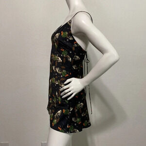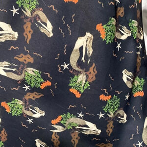 Make a stylish statement with this Zara black mermaid print slip dress. The dress has a sleeveless design with a V-neckline and drawstring closure. The polyester material makes it comfortable to wear, and the dress length is short, making it ideal for parties, cocktails, and casual events. Its slip dress style adds a touch of elegance to your wardrobe, and it's perfect for those who love to make a fashion statement.