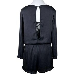 Zara Silk Romper Lace Underlay Long Sleeve Black XS